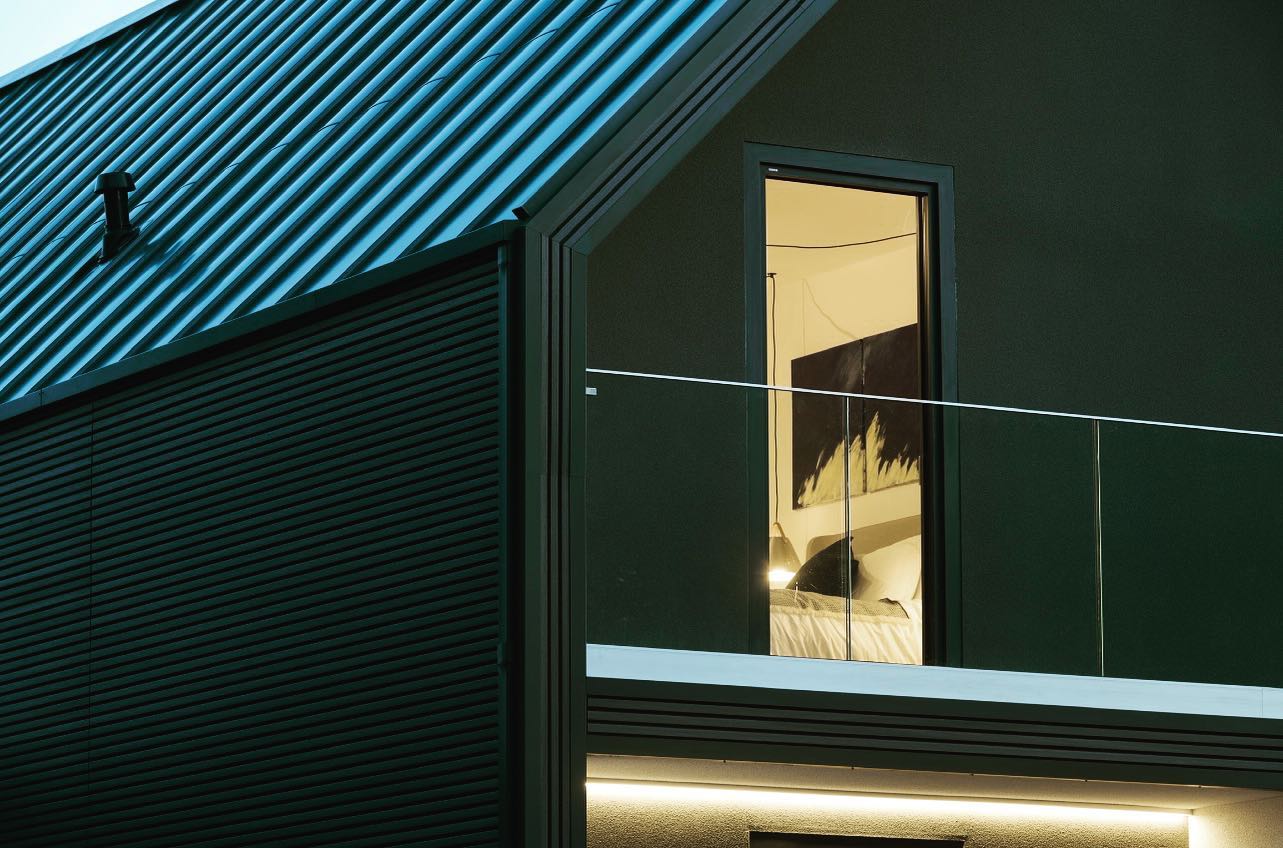 Namą papildo revoliucinė 12 kW fotovoltinė kolektorių sistema, beveik nematoma ir integruota į plieninius stogo elementus.