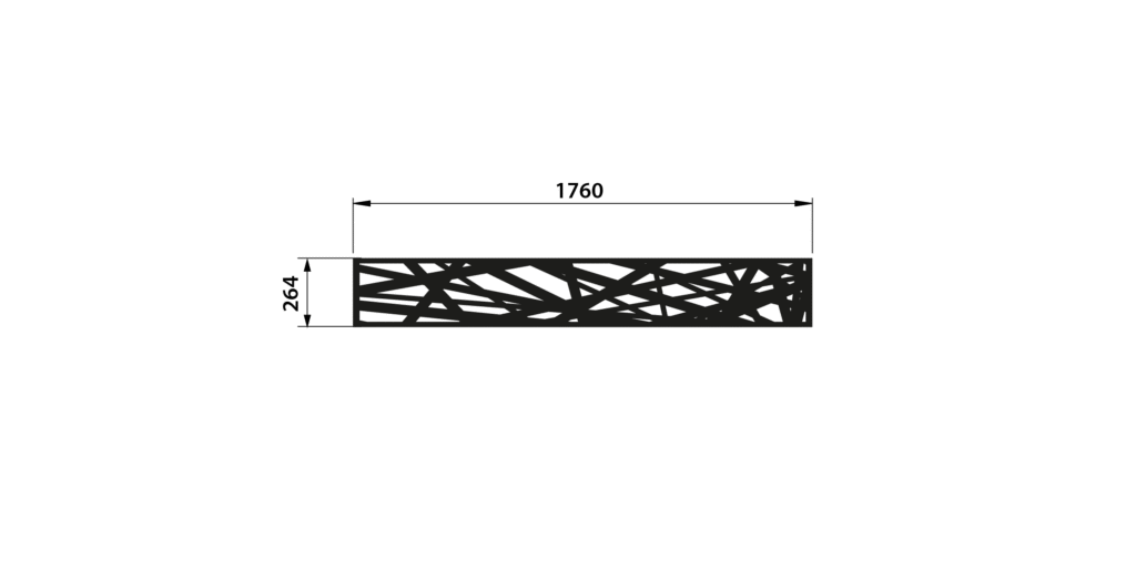 Horizontalus HERA dekoras, matmenys 180 × 30 cm, taip pat tiekiamas su rėmu ir apdailos profiliu. Šis variantas pakeičia dvi BOSTON PREMIUM FIBERDECK® lentas.