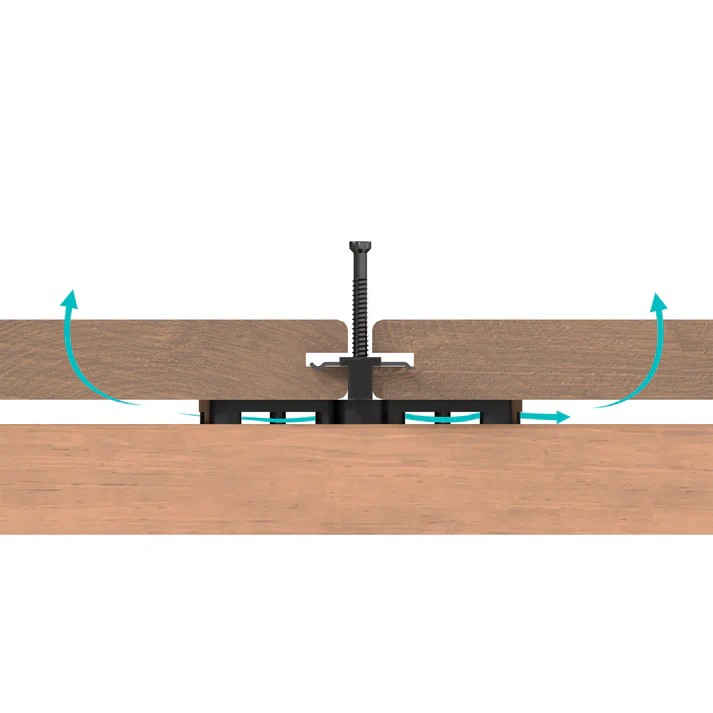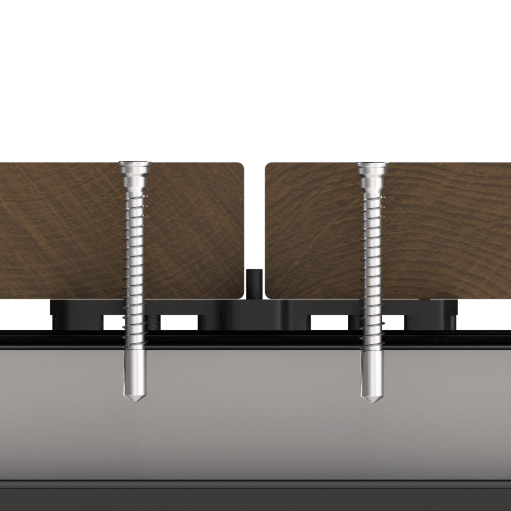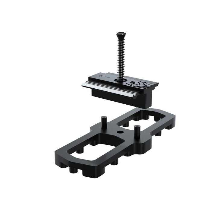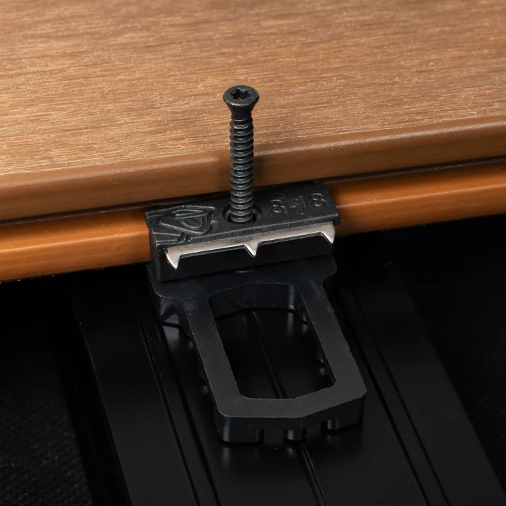 Universalus ir nematomas tvirtinimo komplektas terasos lentoms, skirtas 20–28 mm storio ir 90–150 mm pločio lentoms. Tvirtinimo sistema pritaikyta negriovelinėms (be griovelių) terasos lentoms. Užtikrina ventiliaciją po lenta, atitinkančią DTU 51.4 reikalavimus. Tvirta ir atspari drėgmei bei ekstremalioms temperatūroms. Pagaminta iš polimerinės medžiagos POM (polioksimetileno). Rekomenduojamas išankstinis gręžimas.