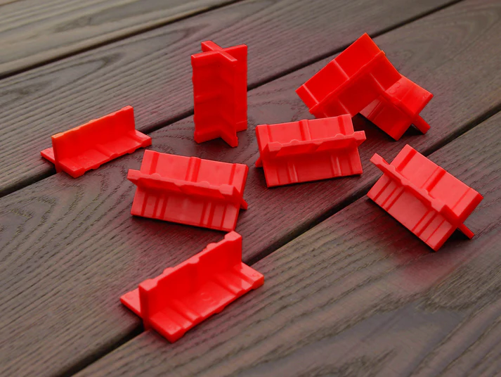 Montavimo pagalbiniai tarpikliai, užtikrinantys lygų ir nuoseklų tarpą tarp lentų, reikalingą ventiliacijai, terasos lentų išsiplėtimui ir susitraukimui, pagal DTU 51.4 reikalavimus.
