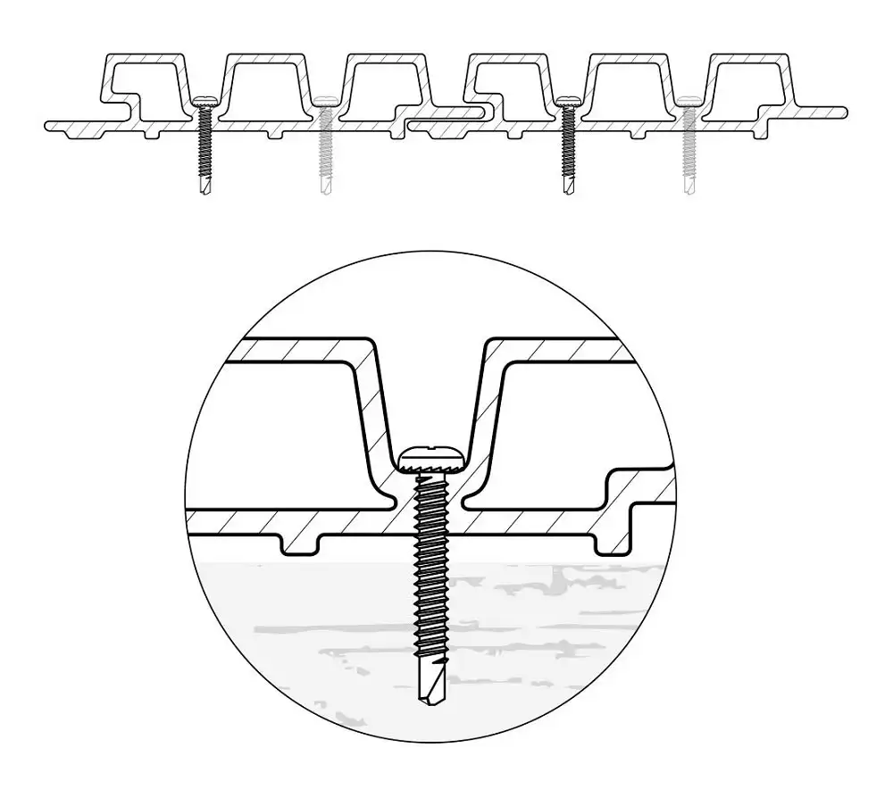 Jie įsukami į lentos bangos įdubą, o jų spalvotos galvutės daro varžtus itin nepastebimus ar beveik nematomus, taip užtikrindamos vientisą ir estetišką fasado išvaizdą.