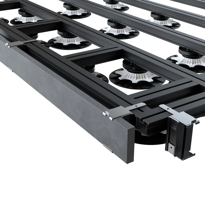 Aukšto profilio aliuminio kabliukai, skirti keraminių plytelių kraštams palaikyti ir pritvirtinti plokštelę su reguliuojamu aukščiu aplink terasos rėmą. Šie kabliukai suderinami su STRUCTURAL aliuminio sijų sistema. Viršutinis tvirtinimo varžtas įtrauktas. Komplekte – 8 vnt.
