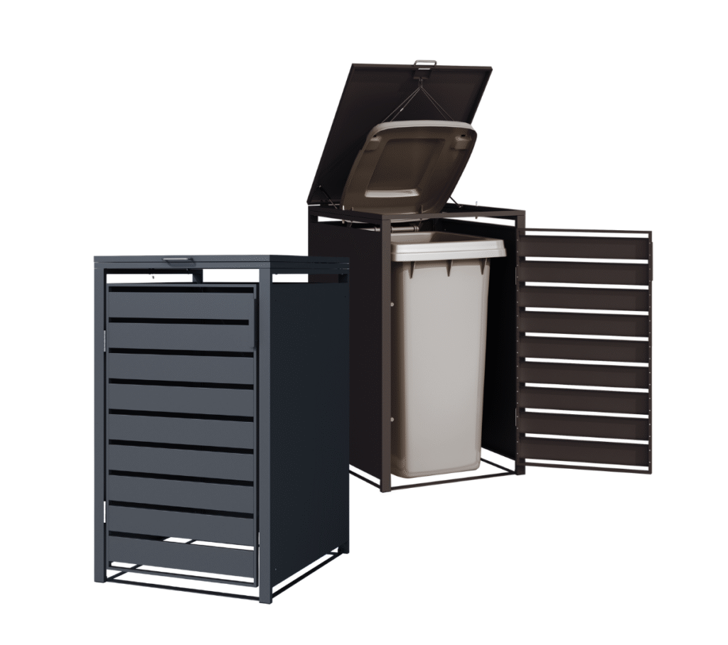 Mūsų šiukšlių konteinerių pastogėse įrengti patogūs automatiniai dangčiai sklendėmis, kurie turi automatinio nuleidimo mechanizmą bei švelnaus uždarymo slopintuvus, leidžiančius dangčiui užsidaryti beveik tyliai. Tai suteikia galimybę patogiai ir be vargo išmesti atliekas viena ranka.